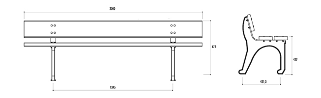 2000 mm hauteur totale. Il faut également penser à la hauteur de l assise du banc public pour le confort des usagers. 690 mm entraxe de piétement.